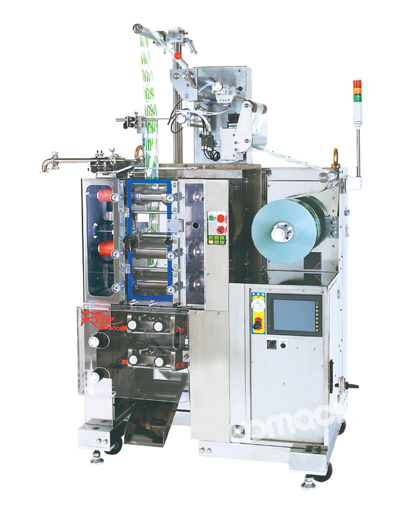 本機是重視應用性?操作性?保養性的小巧精致型液體?粘體自動充填包裝機。本機通過全軸伺服控制,可將制袋相關的內容如制袋尺寸?封口溫度?充填量?各種驅動的時機等進行文檔管理,可記憶100種以上的產品數據。觸摸屏中「管理項目」「記憶項目」「初期設定值」等用途分別用顏色區分,操作性出色,原反周邊整潔利索!本機無任何多余的控制類裝置。本機標準配備薄膜糾偏裝置,使各種薄膜都能穩定通過機器各部位;采用透明防護罩,可從外部目視確認驅動部狀態;另外,不管是從機器正面還是背部,都易進行熱輥筒的保養工作。更為方便的是,只要取下切割裝置的4處固定部,就可將切割裝置整體卸下,分解檢修非常簡單。
